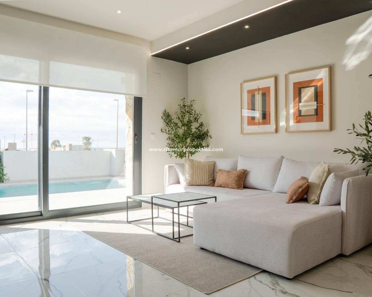 Exklusives mediterranes Wohnen in Lo Marabú, Ciudad Quesada Erstklassige Lage mit Natur und Bequemlichkeit Entdecken Sie den Charme des Lebens in Lo Marabú, Ciudad Quesada, einer exklusiven Wohngegend, die modernen Komfort mit der Schönheit der mediterranen Natur verbindet. Diese Wohnanlage in bester Lage bietet einen einfachen Zugang zu den wichtigsten Dienstleistungen und gleichzeitig eine ruhige Umgebung. Nur eine kurze Autofahrt entfernt befinden sich die atemberaubenden Salzlagunen von La Mata und Torrevieja, ein Paradies für Naturliebhaber, Fotografen und Wellness-Fans. Schöne Strände und Outdoor-Aktivitäten Nur 15 Autominuten entfernt laden die unberührten Strände von Guardamar del Segura und Torrevieja dazu ein, goldene Dünen und kristallklares Wasser zu genießen. Diese Küstenjuwelen bieten Möglichkeiten zur Entspannung, zum Wassersport und zu malerischen Spaziergängen entlang der Küste. Für Outdoor-Fans gibt es in der Gegend zahlreiche Wander- und Radwege, während Golfliebhaber die Nähe zu mehreren renommierten Golfplätzen schätzen werden, die ein erstklassiges Sporterlebnis bieten. Hochwertige Wohnungen und Annehmlichkeiten Diese Wohnanlage bietet durchdacht gestaltete Häuser, darunter: Bungalows: Einheiten im Erdgeschoss mit privatem Garten oder im Obergeschoss mit Sonnenterrasse. Alle Bungalows verfügen über zwei Schlafzimmer, zwei Bäder, einen Parkplatz und einen Abstellraum. Sie sind um einen zentralen Gemeinschaftsbereich mit Swimmingpool und angelegten Gärten angeordnet. Villen: Unabhängige Immobilien mit drei Schlafzimmern und 2/3 Badezimmern, die in ein- oder zweistöckigen Grundrissen erhältlich sind. Jede Villa verfügt über einen privaten Pool, eine Sonnenterrasse und einen Parkplatz auf dem Grundstück. Optional sind auch Keller verfügbar. Moderner Komfort und außergewöhnliche Ausstattung Jedes Haus wird mit hochwertigen Materialien und Oberflächen gebaut: PVC-Fenster mit Doppelverglasung und ferngesteuerten, motorisierten Rollläden. Elektrische Fußbodenheizung in den Bädern. Klimaanlage mit Kanalisation. Villen mit Privatpools (3,00 x 6,00 m) und Duschen aus Edelstahl. Gemeinschaftspools mit Kinderbereich für die Bewohner der Bungalows. Als spezielles Einführungsangebot sind in ausgewählten Häusern Haushaltsgeräte und ein Möbelpaket enthalten. Ausgezeichnete Verkehrsanbindung und lokale Highlights Durch seine strategische Lage in Rojales, Alicante, bietet dieses Projekt eine hervorragende Infrastruktur und Anbindung: Flughafen Alicante-Elche (ALC): 38 km (35 Minuten mit dem Auto). Flughafen Murcia-Corvera (RMU): 65 km (50 Minuten mit dem Auto). Durch die Nähe zu Hauptverkehrsstraßen wie der AP-7 und der N-332 sind Städte und Sehenswürdigkeiten in der Nähe leicht zu erreichen. Lokale Einkaufszentren, Restaurants und Einrichtungen des täglichen Bedarfs sind zu Fuß erreichbar. Mediterranes Leben genießen Mit ihrer perfekten Mischung aus modernem Wohnen, natürlicher Schönheit und unvergleichlichem Komfort ist diese Wohnanlage in Lo Marabú die ideale Wahl für alle, die einen hochwertigen Lebensstil suchen. Verpassen Sie nicht die Chance, in Ihr Traumhaus im Herzen des Mittelmeers zu investieren. Kontaktieren Sie uns noch heute, um einen Besichtigungstermin zu vereinbaren oder mehr über diese außergewöhnliche Anlage zu erfahren!