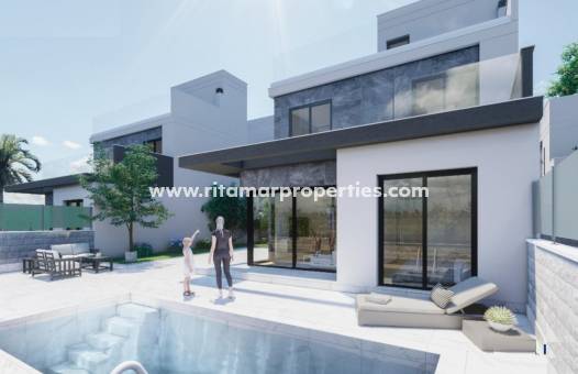 NEU GEBAUTE VILLEN IN PILAR DE LA HORADADA New Build Villen in Pilar de la Horadada gelegen. Villen bauen über 2 Etagen verfügt über 3 Schlafzimmer, 2 Bäder, Gäste-WC, offene Küche mit dem Wohnzimmer, Keller, Terrasse und Solarium, Garten mit privatem Pool. Privater Parkplatz im Untergeschoss. Einbauschränke in den Schlafzimmern mit weiß lackierten Türen vom Boden bis zur Decke, ausgestattet mit Schubladen, Kleiderstangen und hohem Stauraum. Möbliertes Ankleidezimmer. Vorinstallation von Klimaanlagen (Split) in den Schlafzimmern und im Wohnzimmer. Installation von Fußbodenheizung im ganzen Haus. Villen befinden sich nur wenige Meter von allen Dienstleistungen und dem Zentrum. Pilar de la Horadada ist ein typisch spanisches Dorf im südlichsten Teil der Costa Blanca. Die große Hauptstraße hat Supermärkte, viele Geschäfte, Restaurants und Bars und einige schöne Plätze. Die schönen Strände von Torre de la Horadada und Mil Palmeras mit ihrer feinen Sandpromenade sind nur 5 Minuten entfernt. In Pilar de la Horadada gibt es außerdem ein gut ausgebautes Rad- und Wanderwegenetz und ein großes Angebot an verschiedenen sportlichen Aktivitäten. Der 18-Loch-Golfplatz Lo Romero ist nur eine kurze Autofahrt vom Ort entfernt. Die Flughäfen von Corvera (Murcia) und Alicante sind 40 bzw. 55 Minuten entfernt.
