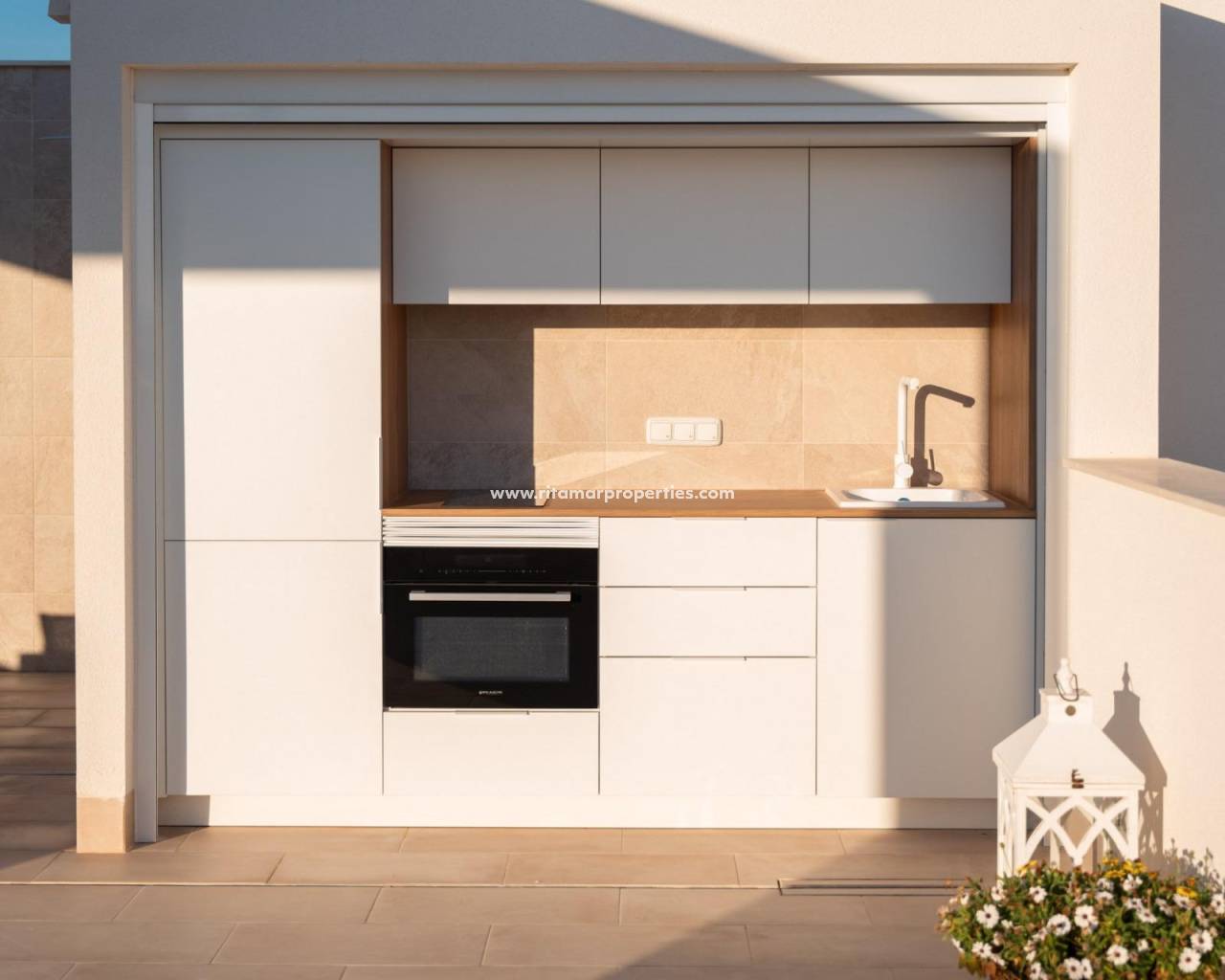 NEUBAU WOHNANLAGE IN EL RASO, GUARDAMAR DEL SEGURA Neubau einer privaten Wohnanlage mit Wohnungen in El Raso, Guardamar del Segura. Die Anlage besteht aus 135 Wohnungen mit 2 oder 3 Schlafzimmern in Blöcken mit 3 oder 5 Etagen plus Solarium, die minimalistisch und mit hohen Qualitätsstandards entworfen wurden. Die moderne Architektur harmoniert mit unseren großen Freiflächen, der Natur und den Swimmingpools und bietet eine einzigartige und ruhige Atmosphäre. Wunderschöne Wohnanlagen, darunter ein verglaster GYM-Spa-Bereich mit Blick auf Grünflächen, Swimmingpools und von der Terrasse aus auf die Salzlagune von La Mata, Paddle-Tennisplatz, etc. Parkplatz im Preis inbegriffen. Entwicklung befindet sich auf einem einzigartigen und unwiederholbaren Grundstück, angrenzend an die natürliche Landschaft der Salzlagune, genießen Sie die biologische Vielfalt und einzigartige Umgebung, in El Raso de Guardamar del Segura, mit allen Arten von Dienstleistungen und Annehmlichkeiten und in der Nähe der besten Strände des Mittelmeers. Gleichzeitig können Sie dank der Nähe des Strandes El Moncayo Fahrrad fahren und das beste Klima der Costa Blanca genießen. Zusätzlich und dank der fünf Stockwerke einiger Wohnblöcke, die alle nach Süden ausgerichtet sind, verfügen unsere Luxus-Penthäuser über eine voll ausgestattete Küche auf der Sonnenterrasse, eine Außendusche (warmes/kaltes Wasser) und einen Whirlpool, um die einzigartige Erfahrung des Wohnens in einer einzigartigen und unwiederholbaren natürlichen Umgebung zu vervollständigen. El Raso ist ein Teil von Guardamar del Segura. Guardamar del Segura ist eine Stadt an der Costa Blanca Süd. Mit seinen 11 Kilometern Naturstrand und seinem großen Pinienwald. Guardamar del Segura hat einen großen Hafen, in dem das ganze Jahr über Aktivitäten stattfinden, ein großes Sportzentrum mit Paddle-Tennis, Tennis, Fußball und ein großes beheiztes Schwimmbad, das das ganze Jahr über in Betrieb ist. Es gibt auch eine Bibliothek mit kostenlosem WLAN und Computern. Guardamar del Segura ist nur 20 km vom Flughafen Alicante - Elche (El Altet) entfernt, der aufgrund der großen Nachfrage nach Touristen an der Costa Blanca täglich zahlreiche Flüge mit Verbindungen zu den wichtigsten europäischen Städten anbietet.