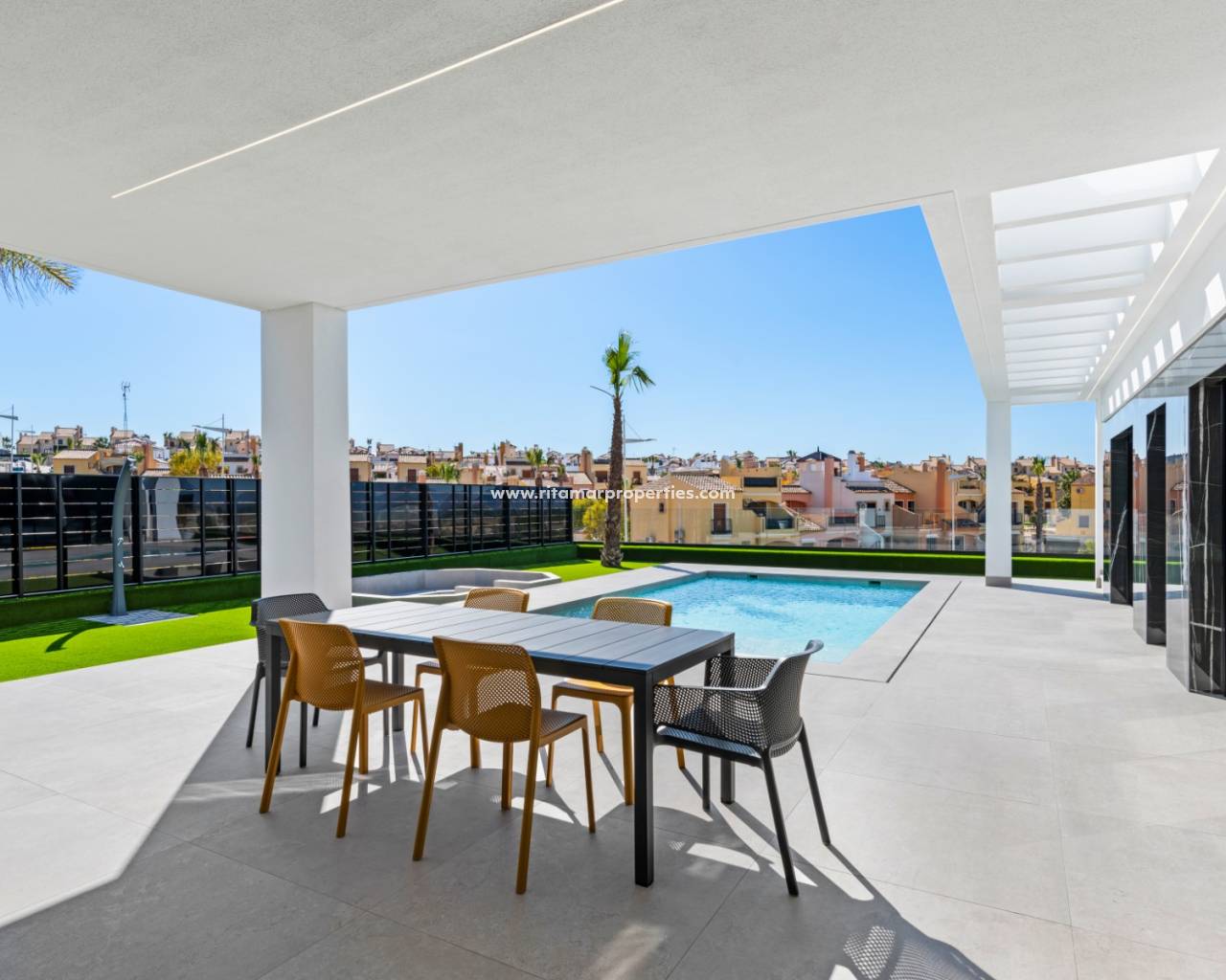 Wir präsentieren Ihnen diese spektakuläre Neubauvilla in Algorfa, einer privilegierten Gegend an der Costa Blanca, die sich durch ihre Ruhe, Natur und ausgezeichnete Lebensqualität auszeichnet. Ein modernes, helles Haus, das sowohl für den Urlaub als auch für das ganze Jahr über maximalen Komfort bietet.
