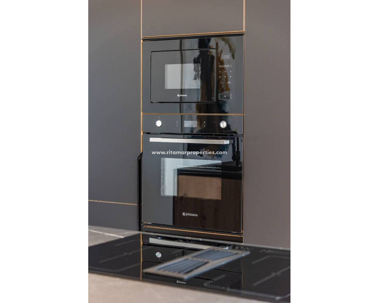 Diese elegante Villa in zeitgenössischem Design bietet dank ihrer großen Fenster großzügige, funktionale und lichtdurchflutete Räume. Das Erdgeschoss verfügt über ein offenes Wohn-Esszimmer mit integrierter moderner Küche, das ein ideales Ambiente für Zusammenkünfte und Momente mit der Familie schafft.