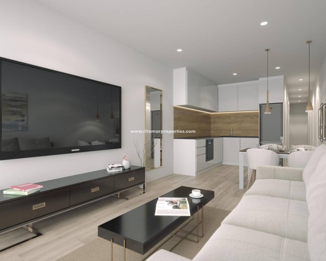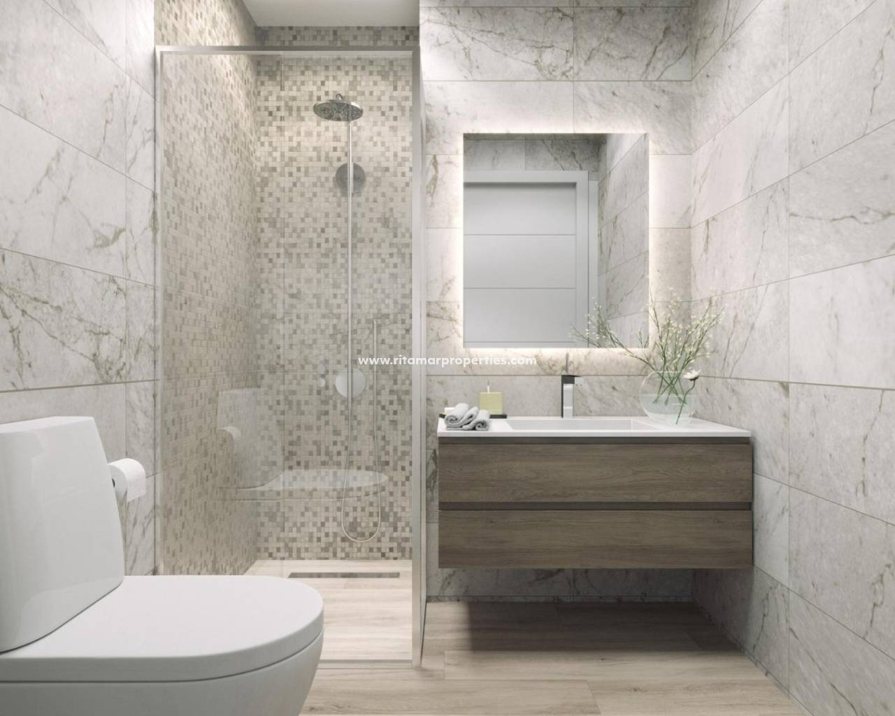 Diese exklusive Neubauanlage umfasst nur 17 Wohnungen und Penthäuser, von Studios bis hin zu Zwei-Zimmer-Wohnungen, die Komfort, Funktionalität und zeitgemäßen Stil bieten. Alle Wohnungen verfügen über eine offene Küche, die mit dem Wohn- und Essbereich verbunden und mit Geräten ausgestattet ist, wodurch helle und einladende Innenräume entstehen. Die Schlafzimmer sind mit Einbauschränken ausgestattet, und die Badezimmer sind komplett mit Waschtischen, Spiegeln, Fußbodenheizung und Duschwänden ausgestattet.
