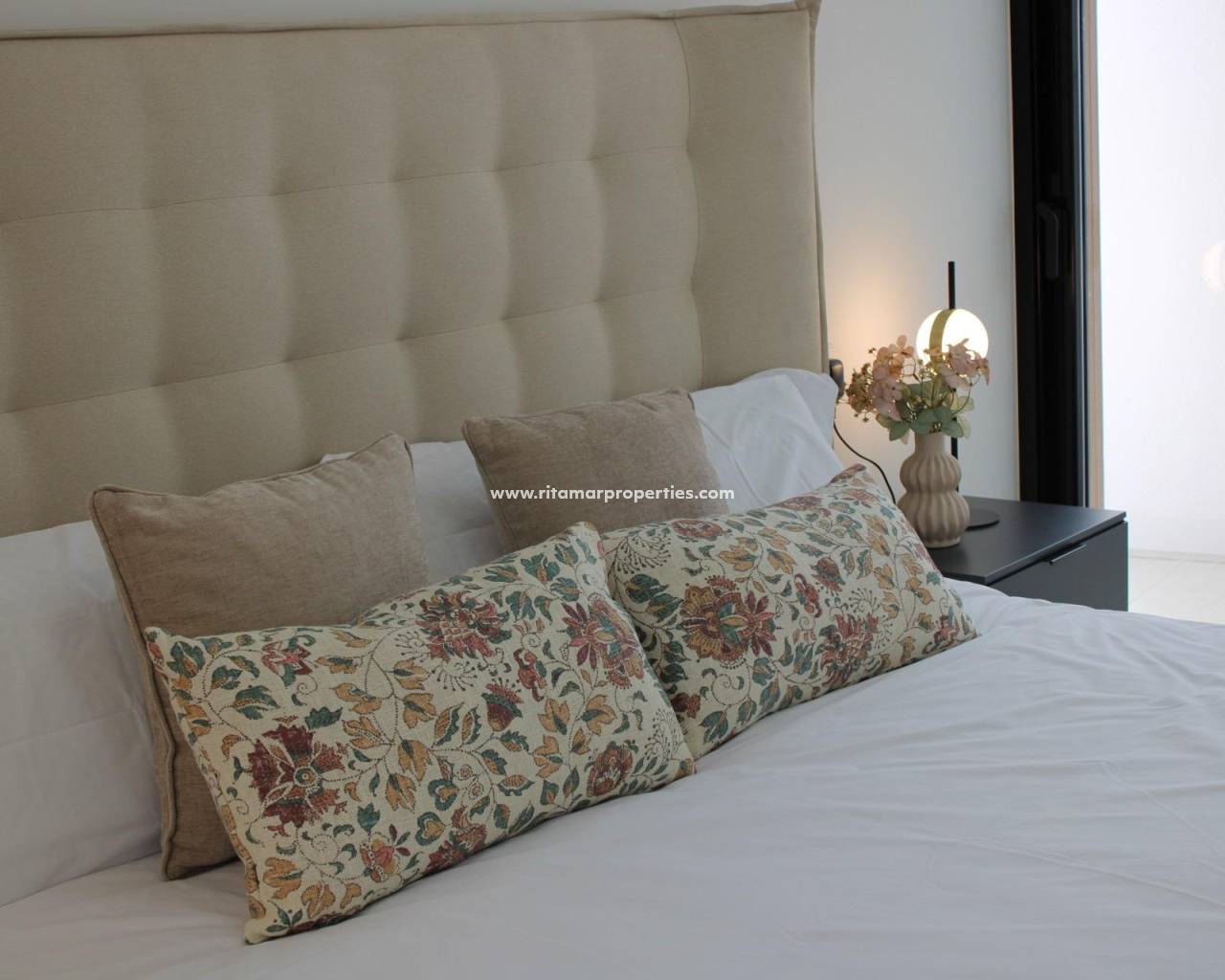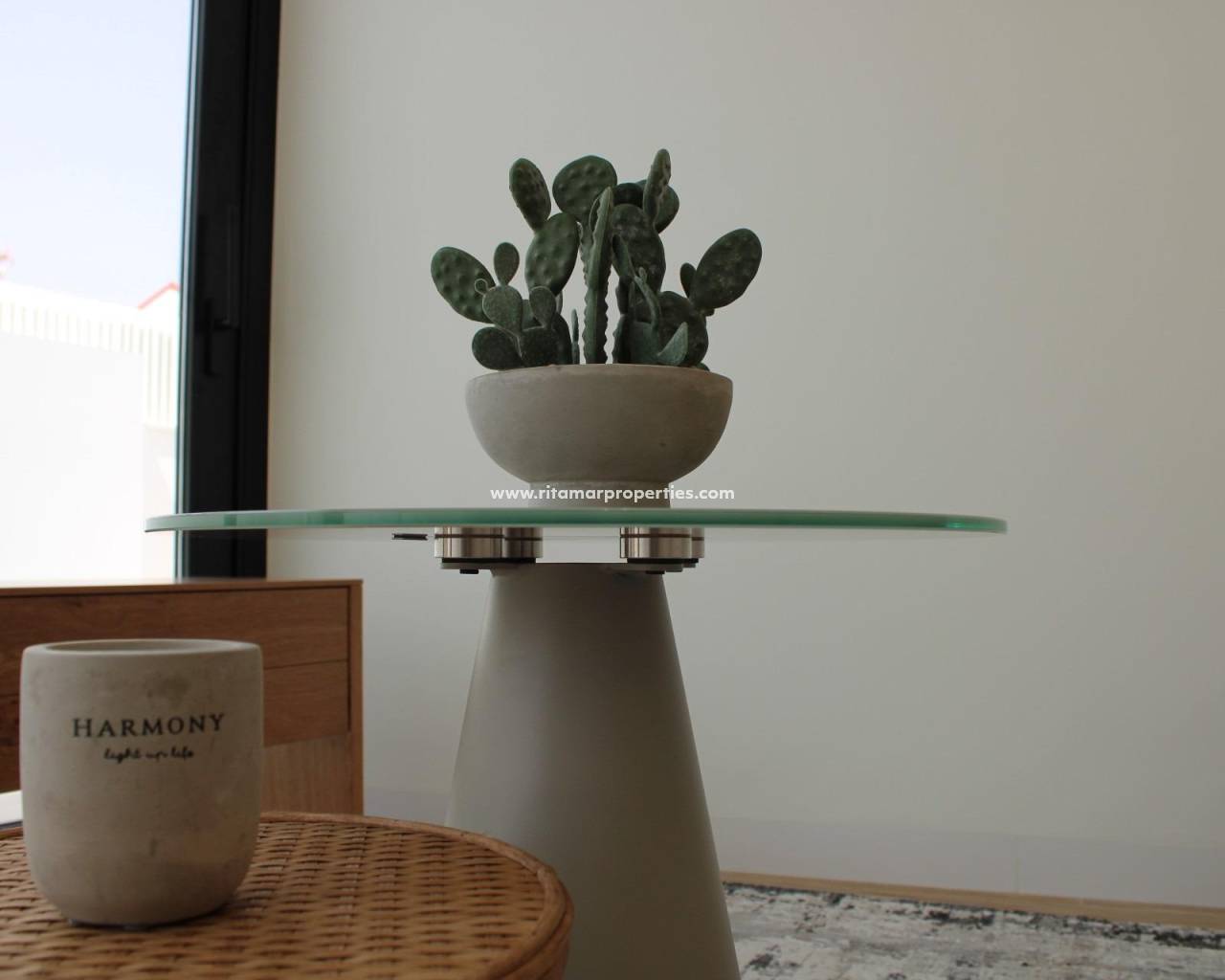 Exklusive Neubauvillen 300 m vom Strand entfernt in Torre de la Horadada Luxuriöses Wohnen an der Küste in bester Lage Entdecken Sie dieses exklusive Neubauprojekt in Torre de la Horadada, einer der begehrtesten Küstenstädte im Süden von Alicante. Nur 300 m vom Mittelmeer entfernt und in Laufnähe zu Geschäften, Restaurants und täglichen Dienstleistungen bieten diese Villen eine außergewöhnliche Gelegenheit, den Lebensstil der Costa Blanca zu genießen. Torre de la Horadada ist bekannt für seine entspannte Atmosphäre, seine schöne Promenade und seine feinen Sandstrände, was es sowohl für das permanente Wohnen als auch für den Urlaub ideal macht. Letzte schlüsselfertige Villa komplett ausgestattet Diese Boutique-Anlage besteht aus nur vier unabhängigen Villen, wobei die letzte Einheit schlüsselfertig und komplett möbliert verfügbar ist. Die Villa wird komplett mit Möbeln, Geräten und Klimaanlage geliefert, sodass Sie sofort einziehen und Ihr neues Zuhause am Meer genießen können. Die Villa befindet sich auf einem privaten Grundstück von ca. 207 m² und bietet rund 130 m² Wohnfläche, verteilt auf das Erdgeschoss, das erste Obergeschoss und eine private Dachterrasse. Modernes Design mit privatem Pool und Sonnenterrasse Die Villa zeichnet sich durch ein zeitgemäßes Design mit offenen und hellen Räumen aus. Im Inneren finden Sie drei geräumige Schlafzimmer und drei Badezimmer, einen Wohn-Essbereich mit offener Küche und direkten Zugang zum Garten und zum privaten Swimmingpool. Das Dachsolarium bietet einen idealen Raum zum Entspannen, Sonnenbaden oder Genießen der freien Aussicht und schafft so einen perfekten Außenwohnbereich für das ganze Jahr. Hochwertige Ausstattung und Komfort Die Immobilie wurde nach hohen Standards gebaut und verfügt über eine verstärkte Eingangstür, motorisierte Rollläden in den Schlafzimmern, einen privaten Swimmingpool und ein einfaches Hausautomationssystem für die elektronische Steuerung. Eine Klimaanlage ist vollständig installiert und sorgt für Komfort zu jeder Jahreszeit. Ein privater Parkplatz auf dem Grundstück sorgt für zusätzlichen Komfort und Sicherheit. Torre de la Horadada und Umgebung Torre de la Horadada bietet eine reizvolle Küstenlandschaft mit einer langen Strandpromenade, Yachthäfen und einer großen Auswahl an Restaurants, Bars und lokalen Geschäften. Die nahe gelegenen Strände von Torre de la Horadada und Mil Palmeras gehören zu den besten der Region und sind ideal zum Schwimmen, Wassersport, Schnorcheln und Tauchen. Die Gegend ist gut angebunden und von Golfplätzen, Einkaufszentren und Freizeitmöglichkeiten umgeben. Entfernungen zu den wichtigsten Sehenswürdigkeiten Strand: 0,3 km Einkaufszentrum Plaza Nueva: 0,2 km Lo Romero Golf: 7 km Yachthafen von Torre de la Horadada: 1,5 km Flughafen Murcia Corvera: 45 km Flughafen Alicante: 50 km Ihr neues Zuhause am Mittelmeer wartet auf Sie Diese schlüsselfertige Villa in Torre de la Horadada ist eine einmalige Gelegenheit, ein modernes Haus nur wenige Schritte vom Strand entfernt zu erwerben. Kontaktieren Sie uns noch heute, um einen Besichtigungstermin zu vereinbaren und sich diese außergewöhnliche Neubauvilla an der Costa Blanca zu sichern.