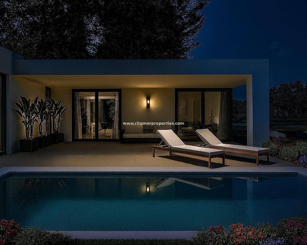 NEWLY BUILT VILLAS WITH POOL IN HONDON DE LAS NIEVES Discover the elegance and comfort of these beautiful detached villas ranging from 108 to 128 m2, designed to offer you an exceptional lifestyle, all on one floor. Enjoy the privacy offered by this villa, where you can relax in your own garden, create an oasis of tranquillity, or cool off in your private pool to enjoy the warm summer days. The property is distributed into two large areas: Day area: Here we find a spacious living-dining room with an open-plan kitchen (kitchen furniture included) that connects to the large modern porch through two large windows, leading to the landscaped outdoor area and the pool. As an extra space, there is a laundry area strategically located in the layout of the house, which is easily accessible from anywhere in the property. Rest area: In this area there are 3 bedrooms. The master bedroom has a large dressing room and en-suite bathroom. There is also a second bathroom for the other bedrooms and the rest of the house. Located in a quiet, residential area, this villa allows you to enjoy the privacy and tranquillity you desire, while being within easy reach of amenities, shops, supermarkets and restaurants. It is the perfect balance between peaceful seclusion and the comforts of modern living. In this development in Hondón de las Nieves, every day is an opportunity to connect with the world. Hondón de las Nieves is a municipality in the Valencian Community, Spain. It is located in the south-west of the province of Alicante, in the Vinalopó Medio region. The beaches and Alicante airport are very close by, only 30 minutes away by car.