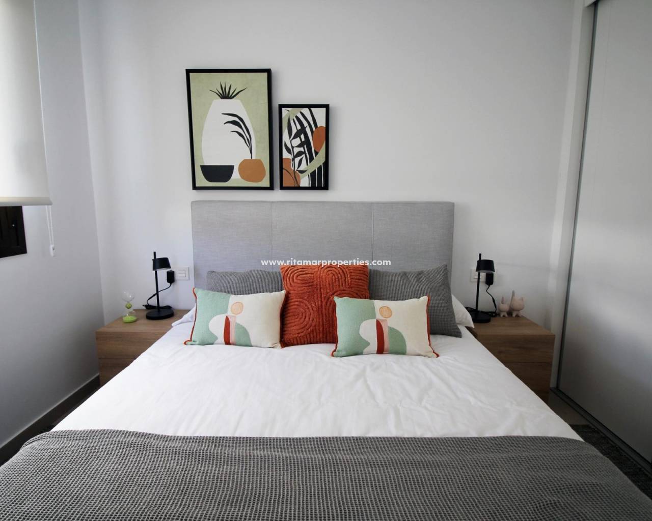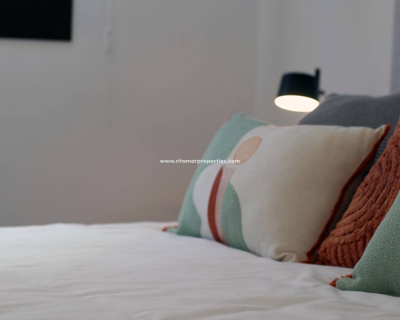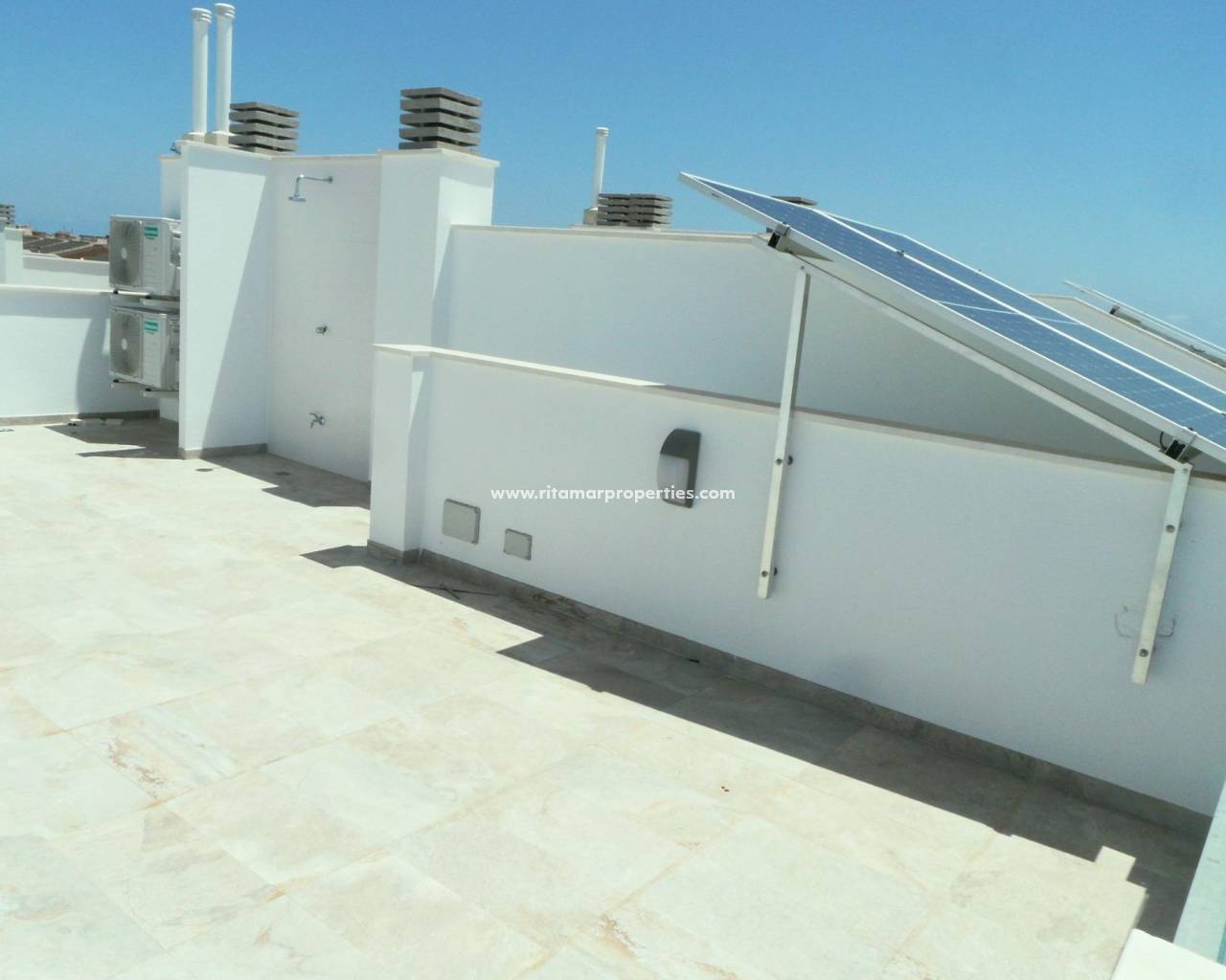 NEW BUILD TOWNHOUSES IN PILAR DE LA HORADADA New Build modern townhouses built in a quiet part of Pilar de la Horadada with proximity to everything you need. Townhouses has 4 bedrooms, 2 bathrooms, open plan kitchen, living room with direct access to the cozy pool area, terrace at the back with parking space , terrace and large roof solarium. Pilar de la Horadada is a typical Spanish village in the most southern part of the Costa Blanca. The large main street has supermarkets, lots of shops, restaurants and bars and some lovely squares. The beautiful beaches of Torre de la Horadada and Mil Palmeras with fine sand promenade is just 5 minutes away. The airports of Corvera (Murcia) and Alicante are respectively 40 and 55 minutes away.