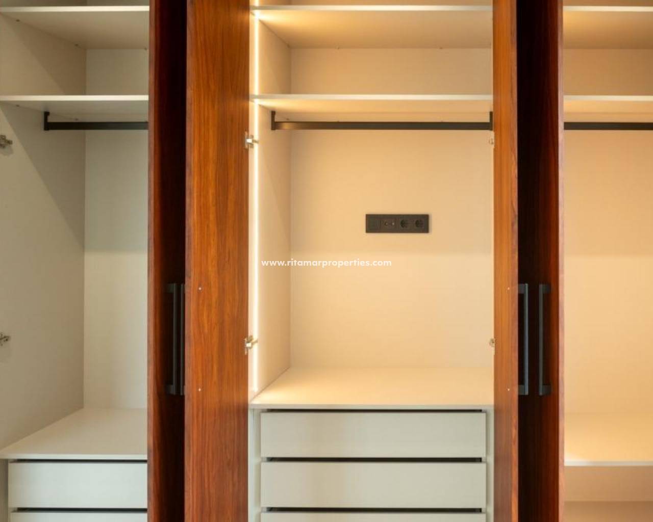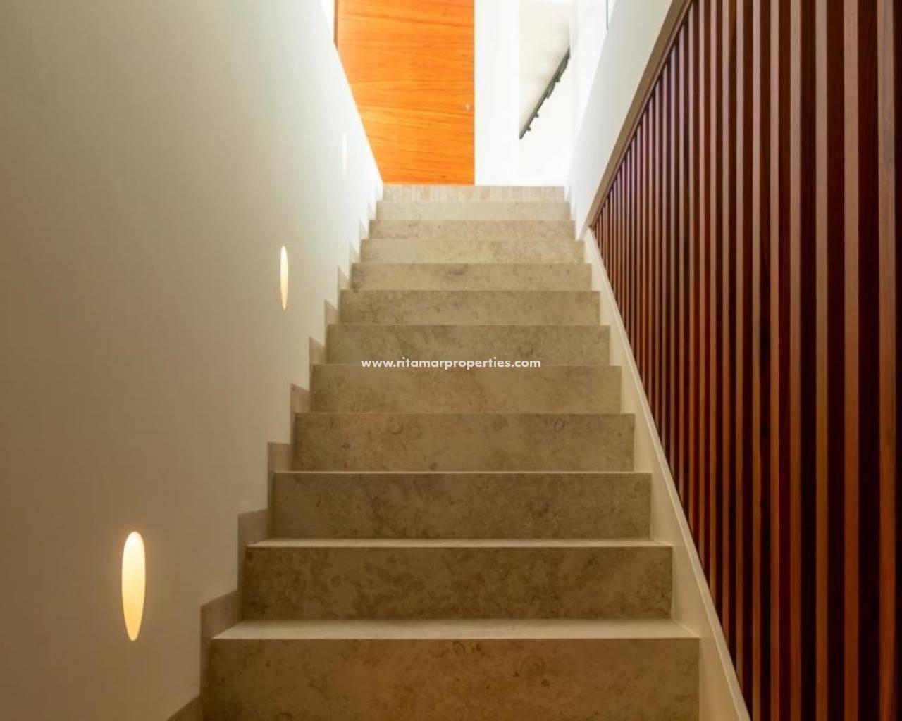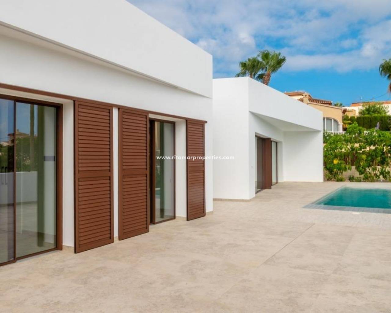Luxury Modern Villa for Sale in Calpe, Costa Blanca - Just 1.5 km from La Fustera Beach Contemporary Design in a Prime Coastal Location This exceptional modern villa, newly built and key ready, is located on the beautiful coast of Benissa, between the charming towns of Calpe and Moraira (Costa Blanca, Alicante). Positioned just 1.5 km from La Fustera Beach, one of the area’s most prestigious Blue Flag beaches, this home combines architectural elegance, high-quality materials, and advanced energy efficiency to deliver the perfect Mediterranean lifestyle. Spacious Layout with Luxury Finishes The villa is distributed over two floors designed for maximum comfort and functionality. On the ground floor, you will find a large garage for two cars, a guest toilet, a laundry room, a spa or leisure area, and a double bedroom with an en-suite bathroom and dressing room. Internal stairs lead to the upper level. The upper floor features a welcoming entrance hall and a contemporary open-plan kitchen fully equipped with premium appliances, including double fridge-freezers, oven, microwave, dishwasher, and induction hob with built-in extractor. The bright living-dining area opens onto the main terrace with its spectacular private pool and sunbathing area. The sleeping area includes three bedrooms, one with an en-suite bathroom, plus a shared bathroom. All bedrooms have direct access to the pool terrace. High-End Features This property includes top-quality materials and energy-efficient systems for year-round comfort: Ducted air conditioning with individual thermostats Underfloor heating with heat pump Aerothermal domestic hot water system Pre-installation for alarm system Aluminum windows with thermal bridge break and low-emissivity glass Motorized blinds in bedrooms Photovoltaic installation for energy savings Heated pool with automatic cover and LED lighting Domotic controls for lighting and climate management Spa and leisure area with pre-installation for jacuzzi, bar, and home cinema Landscaped low-maintenance garden Prime Location Between Calpe and Moraira Situated in one of the most sought-after residential areas of the Costa Blanca, the villa enjoys proximity to both the sea and the mountains. The area offers a wide selection of beaches, coves, restaurants, and leisure options, all within a short distance. Distances to Key Points of Interest La Fustera Beach: 1.5 km Les Basetes Yacht Club: 2 km Calpe: 6 km Moraira: 8 km Altea Golf Club: 12 km Alicante International Airport: 85 km Live the Mediterranean Dream This luxurious modern villa in Calpe offers a perfect blend of style, comfort, and location. Contact us today to arrange a visit and discover your new life on the Costa Blanca.