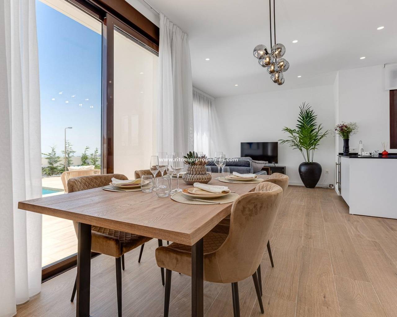 NEW BUILD VILLAS IN BALCON DE FINESTRAT New Build modern villas in Balcon de Finestrat. Wide and bright villas with 3 bedrooms and 2 bathrooms, open plan kitchen with living-dining area, beautiful terrace, private garden with the pool and parking space. Combination of wood and natural stone makes the house modern and rustic at the same time. Villas located 10 minutes from Benidorm and only 2 km from Finestrat. The ride to Tierra Mitica where you can spend nice time with family will take 6 minutes. This location makes it a great choice for a holiday home. Finestrat located in the Marina Baixa region of the Costa Blanca, close to neighbouring Benidorm and about 40 kilometres from the city of Alicante and the international airport. The village is situated on the mountainside of Puig Campana and offers beautiful views of the mountains, the coast and the Mediterranean Sea. Benidorm is just a five-minute drive from the properties and offers all the services you would need including shops, bars, restaurants, supermarkets, banks, pharmacies and several private international schools. Close to the beaches of Levante, Poniente and Cala de Finestrat, with more than 6km in length that are among the best in Europe awarded by the European Union with Blue Flags. All leisure services such as the theme parks of Aqua Natura, Terra Mítica, Terra Natura, Aqualandia and Mundomar, Sierra Cortina and Villaitana Golf courses, hiking and climbing in Puig Campana an incomparable natural setting or enjoy of nautical sports. 921
