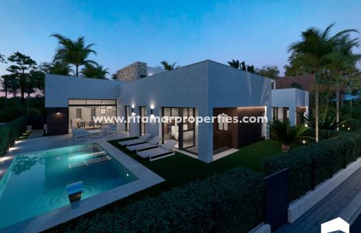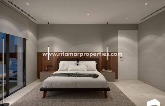 VILLAS DE OBRA NUEVA EN COMPLEJO PRIVADO EN LA PROVINCIA DE MURCIA Villas de nueva construcción en complejo privado en la región de Murcia, rodeado de excelentes campos de golf y a sólo 10 minutos de las playas del Mar Menor. Las villas se distribuyen en 2 plantas y disponen de 3 dormitorios, 2 baños y un aseo y están diseñadas con un estilo contemporáneo y de concepto abierto, que consta de una cocina totalmente equipada y salón-comedor, armarios empotrados, jardín privado con la piscina y plaza de aparcamiento fuera de la carretera, solarium privado. Amplio chalet de 146m² más un sótano muy útil de 120m² acabado con paredes lisas, tomas de agua y electricidad. Esto ofrece la oportunidad perfecta para utilizar como alojamiento adicional, oficina, gimnasio, sala de cine, sala de juegos para niños.... Situado en un complejo cerrado privado, con una entrada de acceso principal y seguridad las 24 horas. El complejo está diseñado en torno a una impresionante zona verde de 126.000 m2. Consta de senderos para caminar y montar en bicicleta, instalaciones deportivas, pistas de paddle y tenis, un campo de minigolf, jardines, parques para perros, zonas de ocio, casa club.... También en la zona central se encuentra la joya del complejo, un lago artificial de aguas cristalinas de casi 17.000m2 de superficie acuática, rodeado de playas de arena blanca y palmeras, trayendo un trozo del Caribe a la Región de Murcia. Hay 2 islas en el lago, una de ellas tiene su propio bar, también hay "Chiringuitos de playa" repartidos por el lago. El complejo está estratégicamente situado a menos de 4 km de la playa y de la localidad de Los Alcázares, donde se pueden practicar diversos deportes náuticos, rodeado de varios campos de golf y de la ciudad de Cartagena a menos de 15 minutos en coche y a 22 km del aeropuerto de Murcia, teniendo por tanto una amplia oferta cultural, gastronómica y deportiva a su alcance.