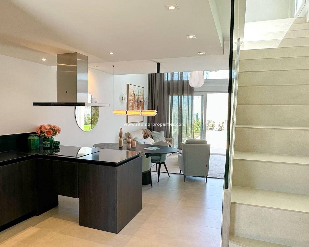 Villas adosadas de nueva construcción con piscina privada en La Finca Golf Resort, Algorfa Vida mediterránea exclusiva en La Finca Golf Descubra esta excepcional nueva promoción residencial situada en el prestigioso complejo La Finca Golf Resort, en Algorfa, Costa Blanca Sur. Puede elegir entre apartamentos de 2/3 dormitorios con piscina comunitaria o villas adosadas o independientes con piscina privada. Rodeada de exuberantes calles de golf y paisajes naturales, esta comunidad ofrece un estilo de vida idílico en un entorno tranquilo y seguro. La encantadora localidad de Algorfa es conocida por su carácter tradicional español, su excelente gastronomía y su ambiente relajado, lo que la convierte en un destino ideal tanto para casas de vacaciones como para vivir de forma permanente. Modernas villas adosadas con piscina privada Estas villas adosadas de bonito diseño cuentan con 3 dormitorios y 2 baños, y combinan funcionalidad, comodidad y estilo moderno. Detalles de la distribución Planta baja Luminoso salón-comedor diáfano conectado a una cocina amueblada Grandes puertas correderas que dan acceso directo al jardín y a la piscina privada Dos amplios dormitorios con armarios empotrados Un cuarto de baño completo Aparcamiento privado dentro de la parcela Planta superior Estudio con cuarto de baño, ideal para oficina, salón o zona de invitados Acceso a una terraza privada abierta de 30 m2, perfecta para tomar el sol y relajarse Características y acabados de alta calidad Construidas con los mejores estándares, estas villas ofrecen comodidades contemporáneas para vivir todo el año, incluyendo Armarios empotrados en todos los dormitorios Persianas eléctricas en el salón y los dormitorios Baños totalmente equipados con espejos y mamparas de ducha Aire acondicionado por conductos totalmente instalado Jardín y piscina privados Ubicación privilegiada cerca de playas, golf y servicios La Finca Golf Resort es uno de los destinos de golf más famosos de la Costa Blanca y ofrece una amplia gama de servicios, como un hotel de lujo, restaurantes, spa e instalaciones deportivas. La urbanización goza de un rápido acceso a las ciudades, playas y aeropuertos cercanos, lo que proporciona comodidad y conectividad. Distancias a puntos clave Club de golf La Finca: a poca distancia Playas de Guardamar del Segura: 15 km Torrevieja y Orihuela Costa: 15 km Almoradí, Benijófar y Ciudad Quesada: a poca distancia en coche Aeropuerto de Alicante: 35 km Disfrute de lo mejor de la vida en la Costa Blanca Con un diseño moderno, espacios exteriores privados y una ubicación privilegiada, estas villas son una excelente opción para familias, inversores y amantes del golf que buscan un estilo de vida de calidad en el sur de España. Póngase en contacto con nosotros hoy mismo para concertar una visita o recibir más información sobre esta exclusiva promoción de nueva construcción en La Finca Golf Resort, Algorfa.