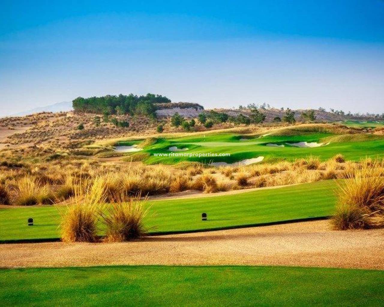 BUNGALOWS DE OBRA NUEVA EN CONDADO DE ALHAMA CAMPO DE GOLF Exclusivo complejo de nueva construcción de 18 bungalows apartamentos en Condado de Alhama. Preciosos bungalows de 2 o 3 dormitorios y 2 baños, diseñados pensando en el bienestar y la calidad de vida de sus habitantes. El residencial ofrece amplias zonas comunes, entre las que destacan varias piscinas comunitarias, una de ellas climatizada, donde disfrutar de momentos de relax y diversión. Además, el complejo cuenta con zonas ajardinadas para pasear y disfrutar del entorno, así como zonas de aparcamiento pensadas para la comodidad de los residentes. Los bungalows de la planta baja disponen de 3 dormitorios y amplios jardines, ideales para pasar tiempo al aire libre y organizar reuniones con familiares y amigos. Las plantas superiores, por su parte, cuentan con 2 dormitorios y un amplio solarium que permite aprovechar al máximo la luz del sol y las vistas del entorno natural. Condado de Alhama Golf Resort es un fantástico Resort de Golf con numerosas instalaciones y servicios . Un centro comercial, un centro deportivo, una gran variedad de bares y restaurantes, supermercados y más de 25 piscinas y jardines comunitarios. Condado de Alhama Golf Resort tiene su propio campo de golf diseñado por Jack Nicklaus y está a sólo 15 minutos de las hermosas playas de Bolnuevo y Mazarrón. Mazarrón tiene más de 35 km de costa, gran parte de la cual es costa virgen. Numerosas playas de la Bahía de Mazarrón han sido galardonadas con la Bandera Azul por su calidad. Condado de Alhama Golf Resort está a sólo 20 minutos del nuevo Aeropuerto Internacional de Corvera.