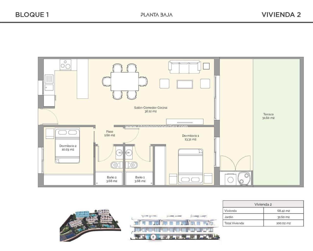 NIEUWBOUW WOONCOMPLEX IN FINESTRAT Nieuwbouw wooncomplex in Balcon de Finestrat. Dit complex bestaat uit moderne appartementen met 2 slaapkamers, 2 badkamers, open keuken en woonkamer. Sommige appartementen hebben uitzicht op zee. Appartementen op de begane grond met een privétuin, appartementen op de middelste verdieping met terrassen en appartementen op de bovenste verdieping met terrassen en privésolariums. Elke woning heeft een ondergrondse privéparkeerplaats. De woningen hebben toegang tot de gemeenschappelijke ruimte met 3 zwembaden, parkeerplaats, paddle, speeltuin, calisthenics. Het is een geweldige kans en voorrecht om te kunnen leven met deze omgeving van golf en strand, dicht bij alle voorzieningen van alle diensten beschouwd als een van de beste plaatsen om te investeren. Finestrat ligt in de regio Marina Baixa van de Costa Blanca. Benidorm ligt op slechts vijf minuten rijden van de woningen en biedt alle voorzieningen die je nodig hebt, zoals winkels, bars, restaurants, supermarkten, banken, apotheken en verschillende internationale privéscholen. Vlakbij de stranden van Levante, Poniente en Cala de Finestrat, met een lengte van meer dan 6 km die tot de beste stranden van Europa behoren, bekroond door de Europese Unie met blauwe vlaggen. Alle recreatieve diensten, zoals de themaparken van Aqua Natura, Terra Mítica, Terra Natura, Aqualandia en Mundomar, Sierra Cortina en Villaitana Golfbanen, wandelen en klimmen in Puig Campana een onvergelijkbare natuurlijke omgeving of genieten van nautische sporten. Afstand tot de zee 4 km, tot de luchthaven 26 km en tot de golf 1km.