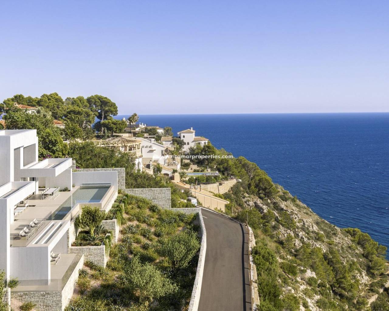 Luxe nieuwbouwwilla met zeezicht nabij het strand van Granadella in Jávea Exclusieve villa in de prestigieuze wijk Granadella in Jávea Ontdek een uitzonderlijke luxe villa die momenteel in aanbouw is in de zeer gewilde wijk Granadella in Jávea, aan de noordelijke Costa Blanca. Gelegen in een rustige, natuurlijke omgeving naast het beschermde bospark en op korte afstand van de beroemde Cala Granadella, biedt deze woning een zeldzame combinatie van privacy, spectaculair uitzicht op zee en de nabijheid van een van de mooiste baaien van Spanje. Javea staat bekend om zijn prachtige kustlijn, charmante oude binnenstad en uitstekende klimaat het hele jaar door. De stad biedt een bruisende levensstijl met internationale restaurants, jachthavens, golfbanen en een breed scala aan buitenactiviteiten. De mix van mediterrane charme en moderne voorzieningen maakt het tot een van de meest gewilde bestemmingen aan de Costa Blanca, zowel voor permanente bewoning als voor luxe vakantiehuizen. Moderne architectuur met ruime woonruimtes Deze elegante designvilla staat op een royaal perceel van 925 m² en biedt een indrukwekkende bebouwde oppervlakte van ongeveer 677 m², verdeeld over drie verdiepingen. De eigentijdse architectuur gaat naadloos op in het omringende natuurlijke landschap en benut het natuurlijke licht en het panoramische uitzicht optimaal. De woning beschikt over vier ruime slaapkamers, vijf badkamers en een gastentoilet. Grote open woonruimtes sluiten naadloos aan op de buitenterrassen, waardoor een lichte en comfortabele leefomgeving ontstaat die is ontworpen voor het moderne mediterrane leven. De villa beschikt tevens over een privékantoor, een volledig uitgeruste fitnessruimte, bergingen en een overdekte parkeerplaats voor twee auto's. Een lift verbindt de verschillende verdiepingen van de woning voor maximaal gemak en toegankelijkheid. Panoramisch uitzicht op zee en buitenleven Een van de meest indrukwekkende kenmerken van het pand is de buitenruimte. De villa beschikt over ongeveer 140 m² aan open terrassen die een spectaculair uitzicht bieden op de Middellandse Zee en de omliggende bergen. Het infinity-zwembad kijkt uit over de kustlijn en het nabijgelegen strand van Granadella, waardoor een unieke omgeving ontstaat om te ontspannen en te genieten van de natuurlijke schoonheid van de omgeving. De aangelegde tuin met bomen en een automatisch irrigatiesysteem versterkt de rustige sfeer van het pand nog verder. Hoogwaardige afwerking en smart home-technologie De villa is gebouwd met hoogwaardige materialen en de nieuwste bouwtechnologieën om comfort, veiligheid en energie-efficiëntie te garanderen. Infinity-zwembad met uitzicht op zee Lift die alle verdiepingen met elkaar verbindt Designkeuken uitgerust met NEFF-apparatuur Vloerverwarming door het hele pand Luchtkanalensysteem met onafhankelijke AIRZONE-thermostaten NIESSEN Free Home domoticasysteem voor de bediening van verlichting en zonwering Gemotoriseerde zonwering in de hele villa Video-intercom en voorinstallatie voor alarmsysteem Aangelegde tuin met irrigatiesysteem Deze voorzieningen zorgen voor een moderne, comfortabele en veilige omgeving, ontworpen voor een luxe levensstijl. Toplocatie dicht bij stranden en voorzieningen Cala Granadella 0,3 km Arenal-strand 7 km La Sella Golf 18 km Denia 20 km Luchthaven Alicante-Elche 100 km Luchthaven Valencia 120 km Verzeker uzelf van uw luxe villa in Jávea Deze uitzonderlijke villa biedt een eigentijds ontwerp, adembenemend uitzicht op zee en een toplocatie nabij een van de mooiste stranden aan de Costa Blanca. Neem vandaag nog contact met ons op voor meer informatie of om een privébezichtiging te regelen en ontdek uw toekomstige luxe woning in Jávea. 921