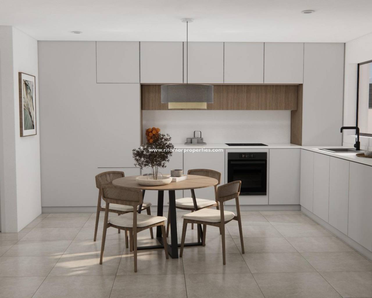 Moderne villa's met privézwembad in Vistabella Golf Resort, Orihuela Nieuwbouwwoningen in het hart van de golfwereld van de Costa Blanca Ontdek dit exclusieve woonproject met 42 nieuwbouwwoningen, gelegen in het prestigieuze Vistabella Golf Resort, in de gemeente Orihuela. Deze moderne woningen bieden een perfecte mix van luxe, comfort en buitenleven, op slechts een steenworp afstand van een 18-holes golfbaan en alle essentiële voorzieningen. Vistabella ligt in een rustige, natuurlijke omgeving tussen San Miguel de Salinas en Los Montesinos en is ideaal voor golfliefhebbers en mensen die op zoek zijn naar een hoogwaardige levensstijl onder de mediterrane zon. Ruime woningen met hoogwaardige afwerking Elke villa heeft een moderne indeling over twee verdiepingen, met 3 slaapkamers en 2 badkamers. De eerste verdieping heeft een onoverdekt terras en tegen meerprijs is er een dakterras beschikbaar. Belangrijkste kenmerken: Privézwembad bij elke villa Parkeerplaats op eigen terrein met automatische poort Vloerverwarming in de badkamers Inloopdouches met glazen schermen Modern badkamermeubilair met spiegels en verlichting Volledig uitgeruste keukens met ingebouwde koelkast, afzuigkap, kookplaat, oven, vaatwasser en wasmachine Gemotoriseerde aluminium rolluiken in de slaapkamers Hoogwaardig Guardian Sun-glas in de ramen Inbouwkasten met lades in alle slaapkamers Vooraf geïnstalleerde airconditioning met luchtkanalen Versterkte voordeur met zes sluitpunten Toplocatie met uitstekende verbindingen Deze woningen liggen op korte loopafstand van het Vistabella Golf Clubhouse, restaurants, bars en winkels, waardoor u gemakkelijk toegang heeft tot alle dagelijkse voorzieningen terwijl u geniet van een rustige en veilige omgeving. Bezienswaardigheden in de buurt: San Miguel de Salinas en Los Montesinos: 5 km Blauwe Vlag-stranden van Guardamar del Segura: 15 km Internationale luchthaven van Alicante: 55 km Luchthaven Murcia Corvera: 65 km Een ideale keuze voor permanente bewoning of investering Of u nu op zoek bent naar een permanente woning, een vakantiehuis of een woning met verhuurpotentieel, deze villa's in Vistabella Golf bieden een ongeëvenaarde combinatie van locatie, design en levensstijl. Neem vandaag nog contact met ons op om een bezichtiging te regelen en uw droomhuis aan de Costa Blanca te bemachtigen.
